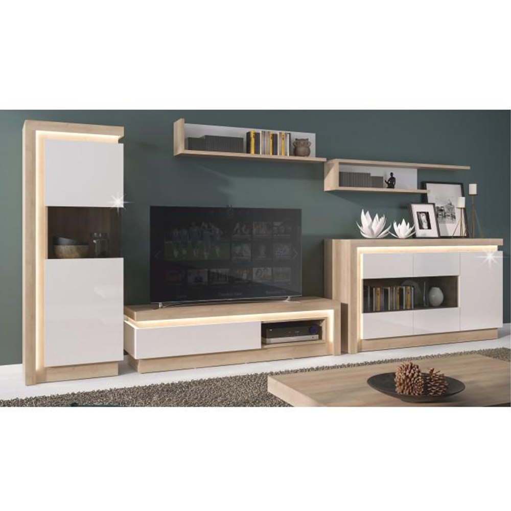 Vitrina LYOV01P, dub riviera / bílá s extra vysokým leskem, LEONARDO
