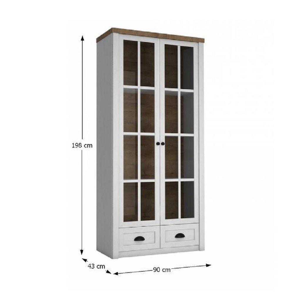Vitrína Provance v barevném provedení sosna andersen / dub lefkas. Materiál laminovaná DTD / sklo. Rozměry (ŠxHxV): 90x43x198 cm Tloušťka materiálu korpus: 15 mm Tloušťka materiálu vrchní desky: 36 mm Dodávané v demontu.