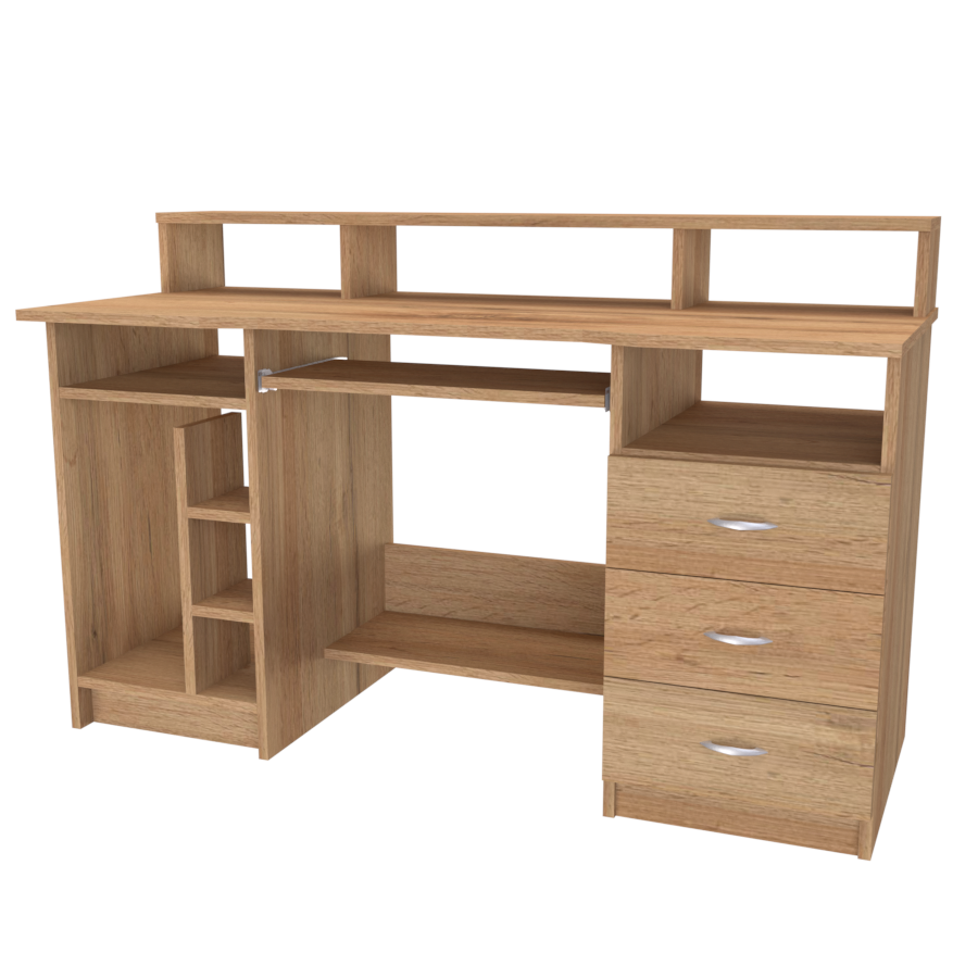 PC a psací stůl WEST je velmi praktickým doplňkem . Velkou výhodou jsou výsuvné police pro umístění např. tiskárny a scanneru nebo jakékoliv jiné techniky. Psací stůl je jedním z kousků nábytku z kolekce kvalitního Českého nábytku. Materiálově je stůl vyroben z laminované desky a ohraněn ABS hranami v dřevodezénu. Psací stůl je doplněn o praktické zásuvky s úchytkami. Velkou výhodou kolekce Českého nábytku je široká škála barev lamina, díky kterým je sladění s již existujícím interiérem výrazně snazší.