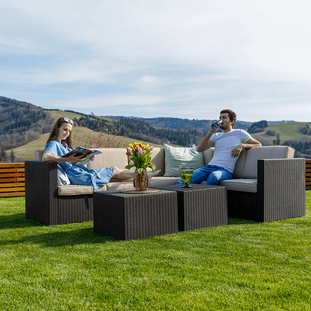 Zahradní ratanový set, přírodní/béžová/černá, ARALY
