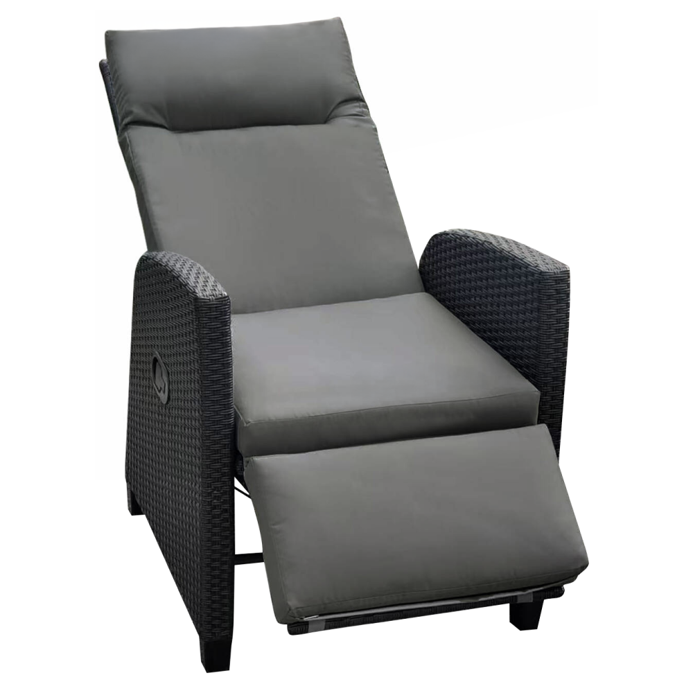 Konstrukce je vyrobena z kombinace hliníku, oceli a černého PE ratanu. O komfort při sezení se postará pohodlný polštář, který je vyroben z voděodolné šedé látky. Jedním z největších benefitů křesla je jeho polohovatelnost. Pomocí mechanismu můžete snadno nastavit ideální úhel opěradla a podnože, čímž si vytvoříte dokonalou polohu pro relaxaci. Zahradní polohovací křeslo PAVIO kombinuje funkčnost, pohodlí a maximální komfort během letních dnů při chvílích relaxu ve vaší zahradě či na terase.