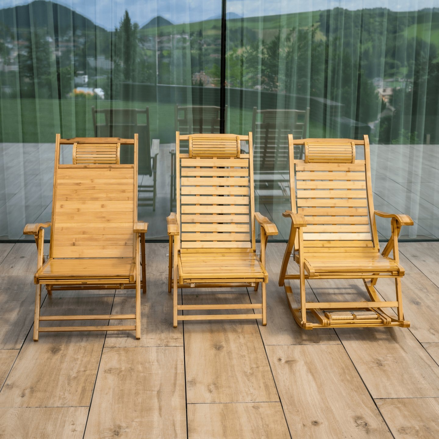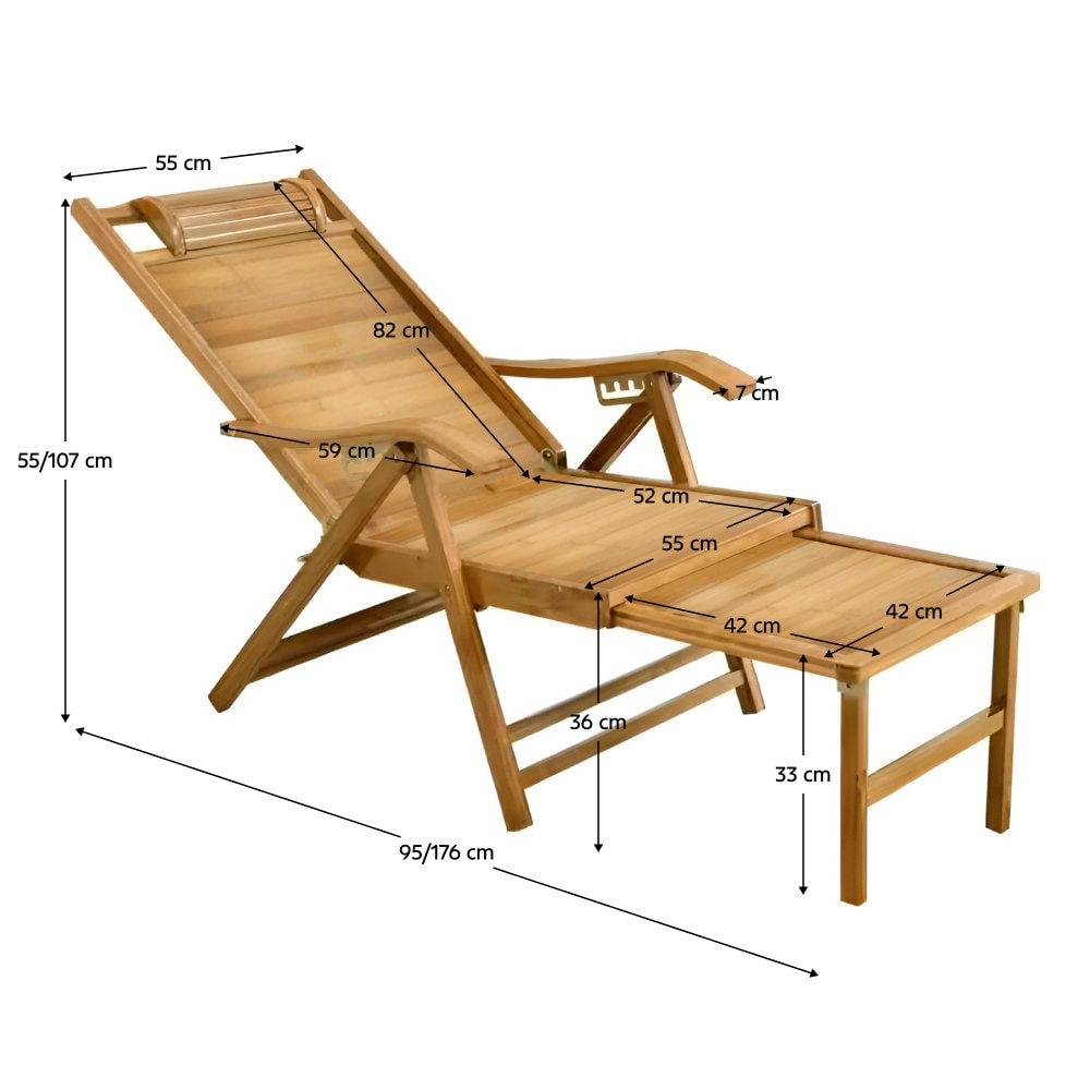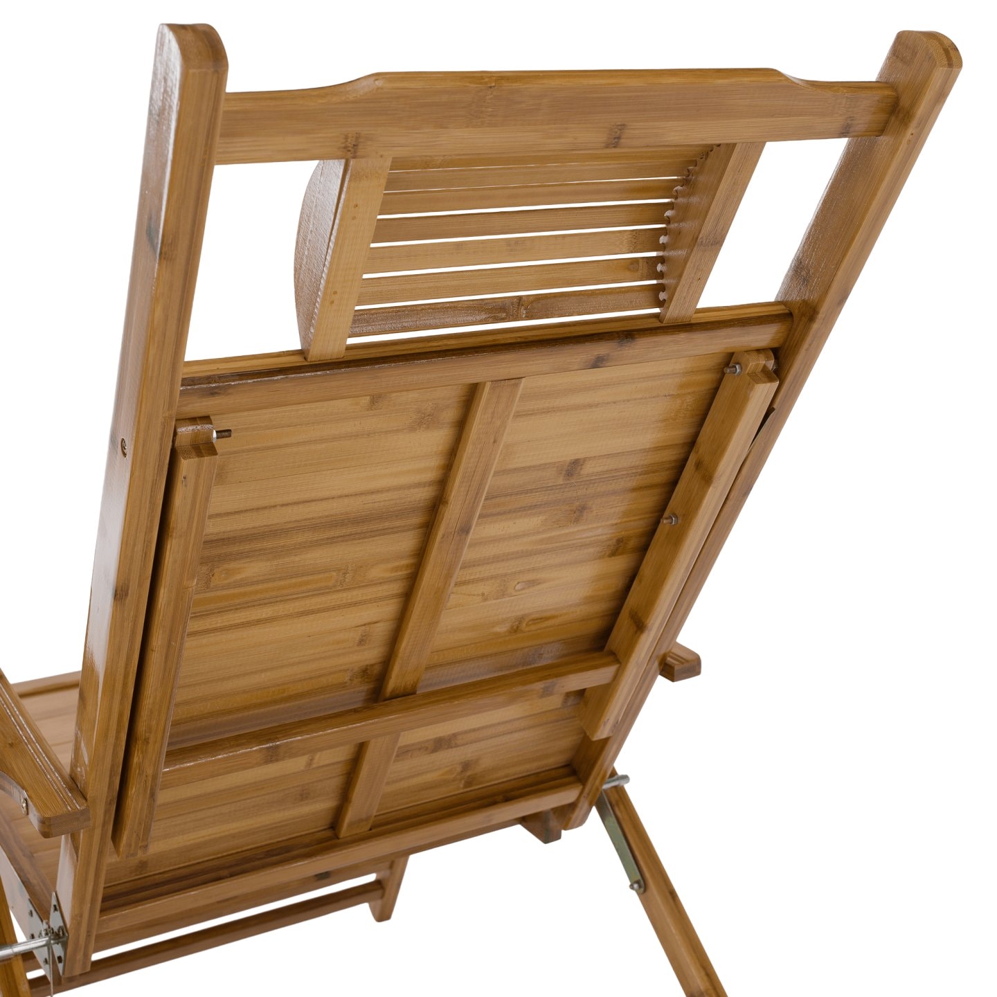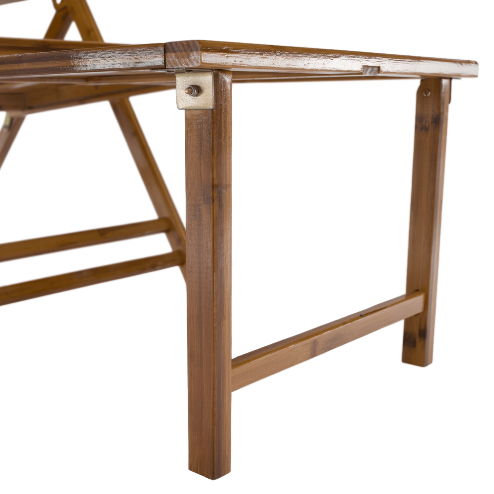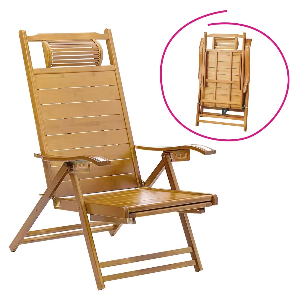 Materiál: masivní bambusové dřevo Barva: přírodní Rozměry (ŠxHxV): 55x95-176x55-107 cm Výška sedu: 36 cm Hloubka sedu: 52 cm Šířka sedu: 55 cm Výška zádové opěrky: 82 cm Šířka zádové opěrky: 55 cm Nosnost: 100 kg Hmotnost: 13 kg Zahradní Skládací Polohovací 5 úrovní polohování Opěrka hlavy S…