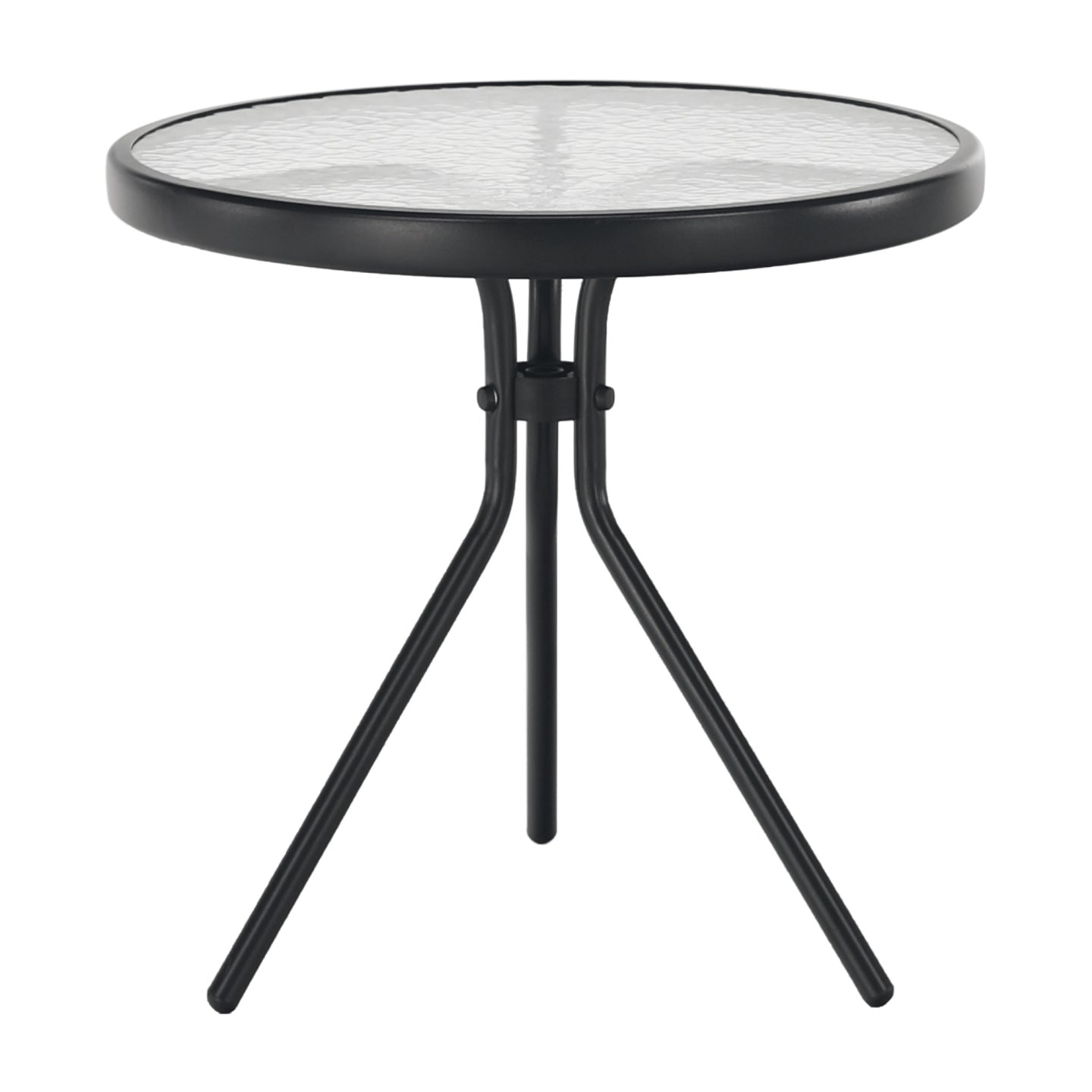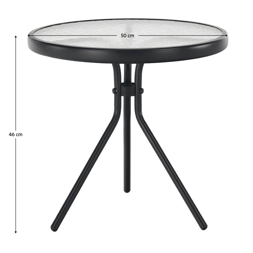 Příruční stolek vhodný k zahradnímu setu: Materiál: tvrzené sklo/ocel Barva: černá Rozměry (průměrxV): 50x46 cm Ocelová konstrukce Stabilitu vytvářejí tři nohy Moderní styl Zahradní Vhodný na terasu, lodžii, zahradu Dodáváno v demontu