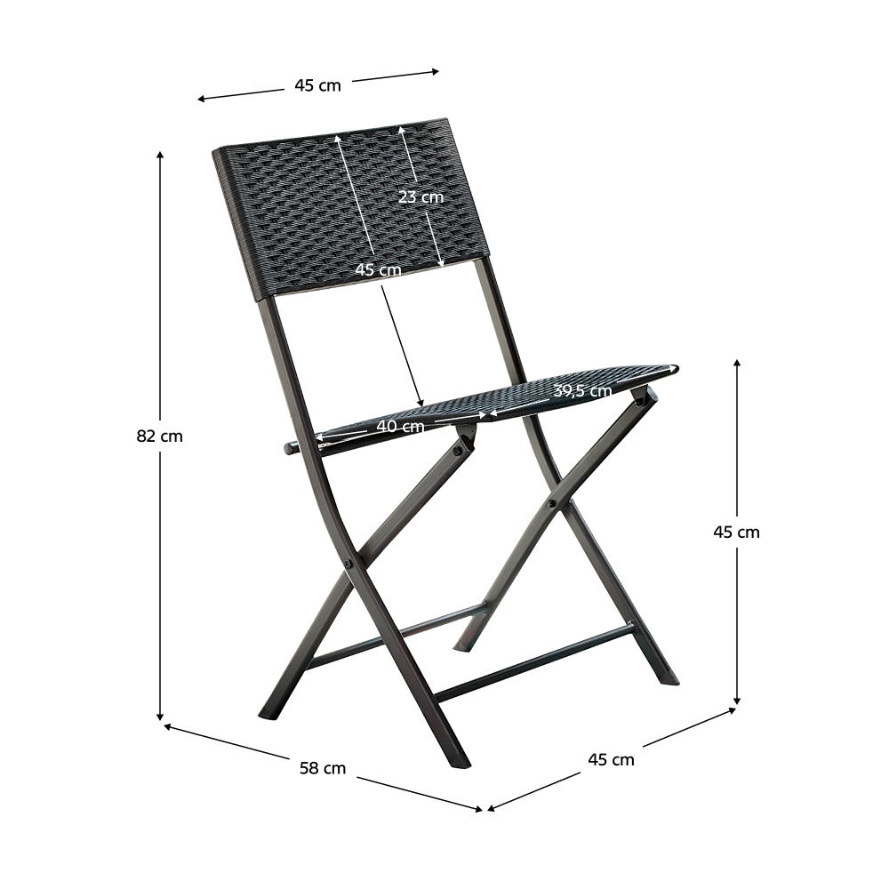 Promění vaši zahradu či terasu na oázu klidu a místo plné odpočinku. Určitě vás zaujme na první pohled. Není jen stylový, ale také funkční. Vyniká funkcí skládání. Tento set zahrnuje stůl a židle vyrobené z technického ratanu. Černá barva přidává moderní a stylový nádech. Ocelový rám zaručuje trvanlivost a stabilitu. Ideální je pro venkovní prostředí, kde si můžete vychutnat stolování a relaxaci na čerstvém vzduchu v zahradě.