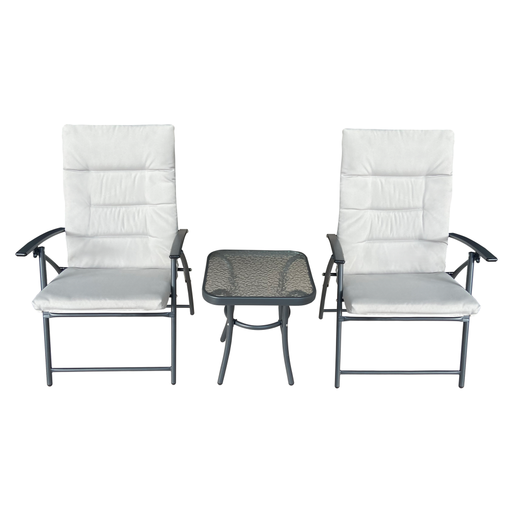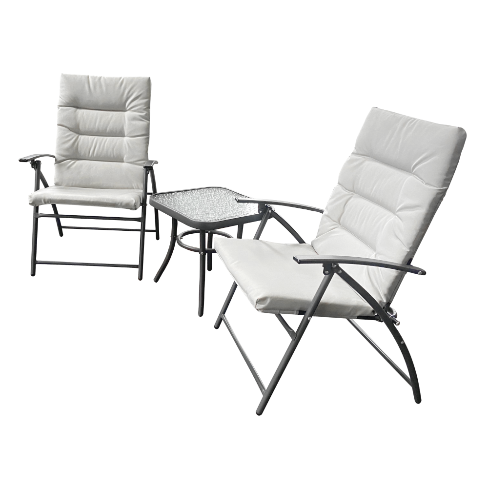 Zahradní set MUSON vám zajistí luxus a maximální komfort. Set obsahuje dvě křesla a konferenční stolek s tvrzeným sklem, k servírování jakýchkoli dobrot. Pohodlí křesel zvyšují polštáře ve světle šedé látce , potah je voděodolný. Kovový rám v tmavě šedém provedení zaručuje trvanlivost a stabilitu. Vytvořte si na zahradě či terase příjemný koutek se zahradním setem MUSON, kde si vychutnáte ranní kávu, odpolední siestu či teplý letní večer s pohledem na hvězdy.