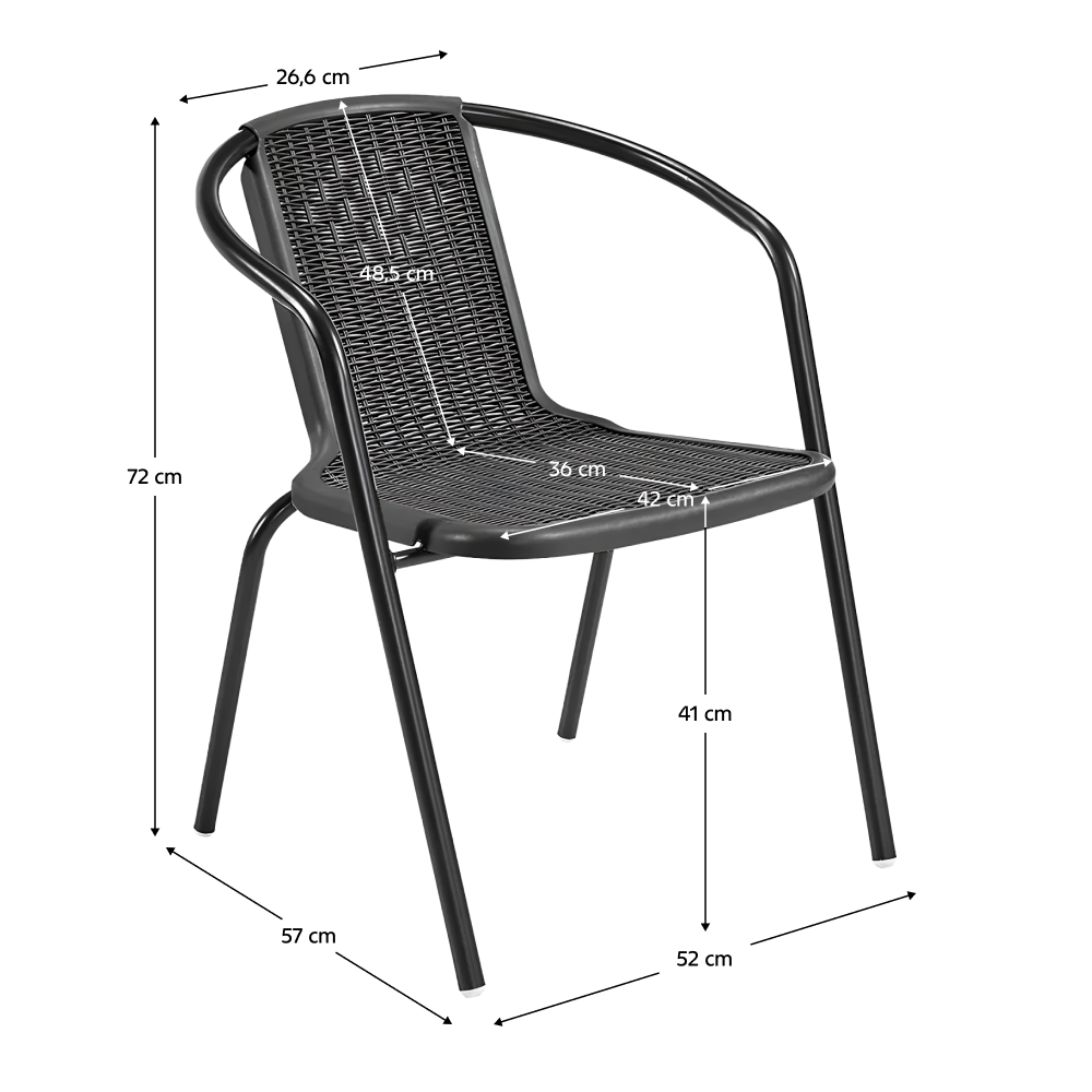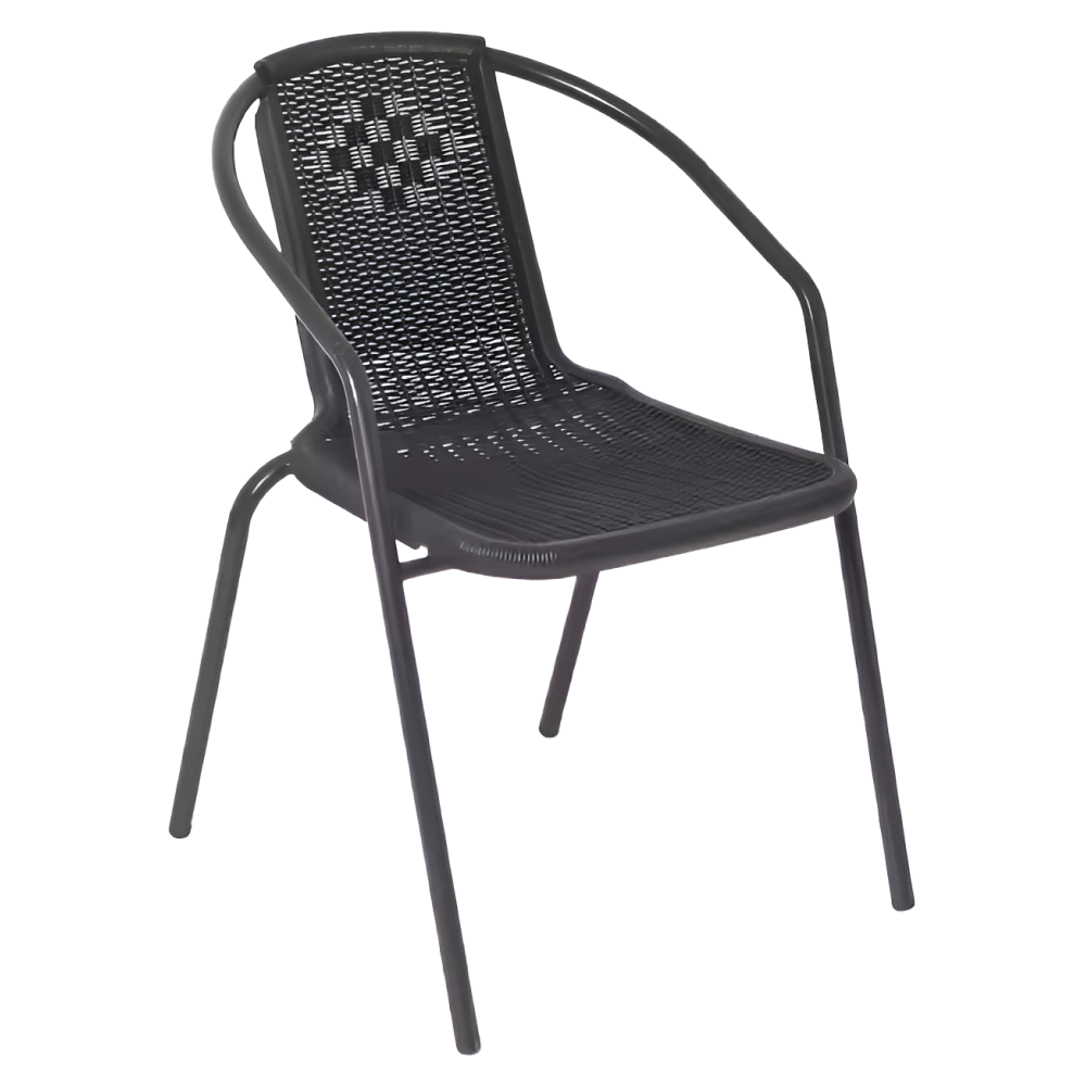 Židle stohovatelná. Barva: hnědá / černá Materiál: ratan / kov Rozměry (ŠxHxV): 53x63x72 cm Výška sedu: 42 cm Hloubka sedu: 40 cm Nosnost: 150 kg