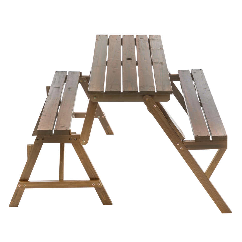 Vytvořte si na zahradě útulné místo k odpočinku s tímto praktickým a stylovým dřevěným stolem ZAGIR, který se snadno promění v pohodlnou lavičku.