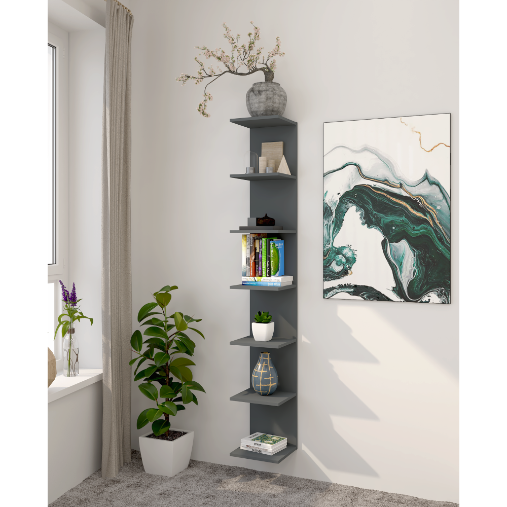 Dodejte svému interiéru stylový a elegantní prvek s nástěnnou policí DORNA. Díky svému úzkému a vysokému designu nabízí dostatek úložného prostoru, přičemž nezabere mnoho místa. Prostorné police umožňují efektivní uspořádání knih, dekorací, suvenýrů nebo jiných drobností. Vyrobena je z kvalitní laminované DTD. Barva grafit působí elegantně a snadno se kombinuje s různými styly. DORNA dodá vašemu domovu styl, eleganci a funkčnost.