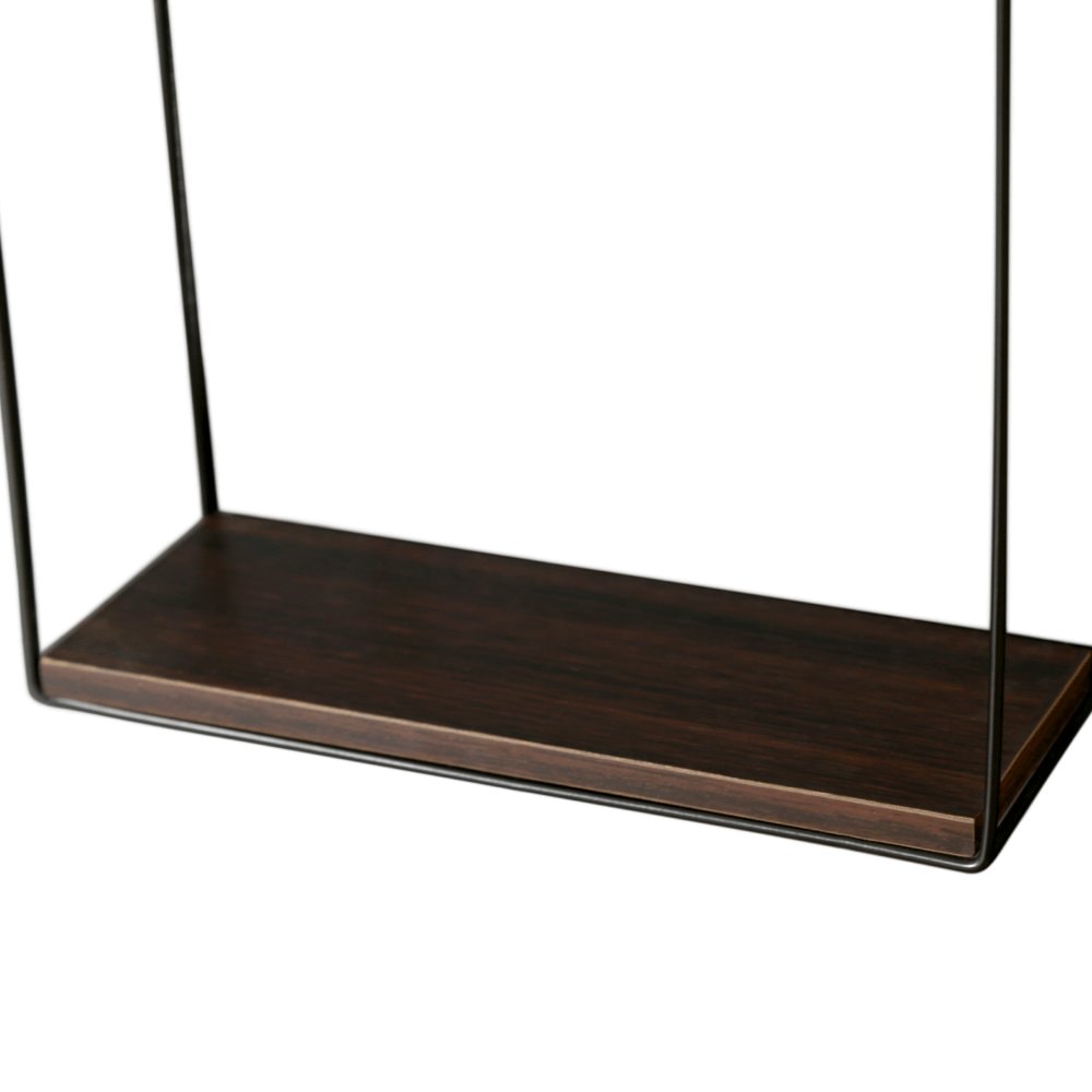 Úložný prostor nabízí v podobě jedné police vyrobené z MDF laminovaná v odstínu ořech. Kovová konstrukce v černé barvě jí dodává stabilitu a elegantní design. Police KASITA vynikne především v dobře osvětlených místnostech, laděných do světlých přírodních barev. Po vystavení knih, dekorací či květin zajistí příjemnou atmosféru v pokoji.