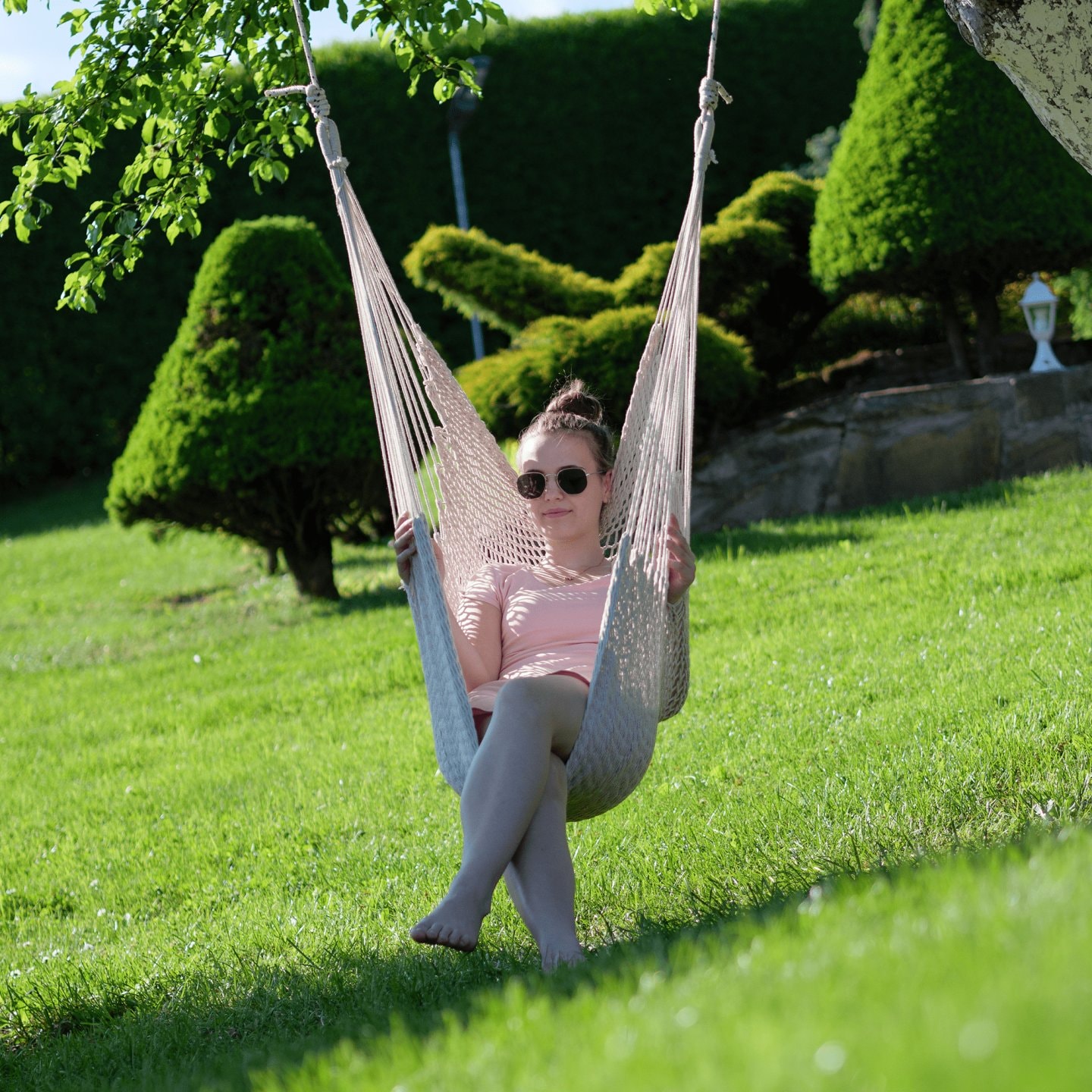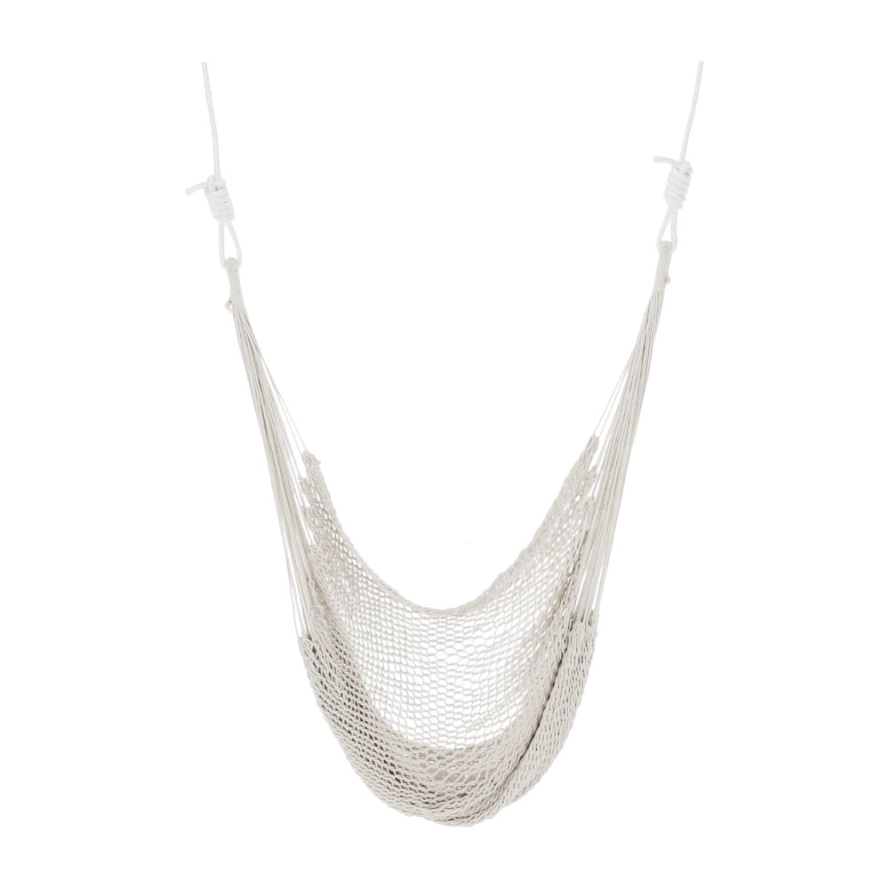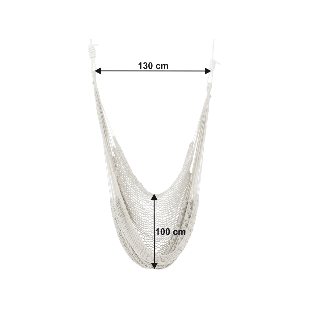 Materiál: bavlna Barva: bílá Rozměry (ŠxH): 130x100 cm Nosnost: 120 kg Vhodné do interiéru a exteriéru Stojan ani jiný závěsný systém není součástí balení Možné zavěsit na dvojici stromů nebo na závěsný systém z půdy Všechno příslušenství k zavěšení křesla si třeba dokoupit, součástí balení je…