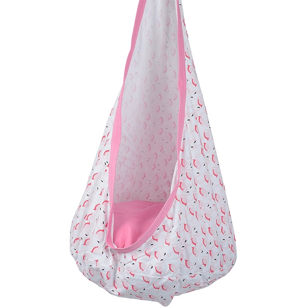 Závěsné houpací křeslo, růžová / vzor plameňák, SIESTA TYP 2