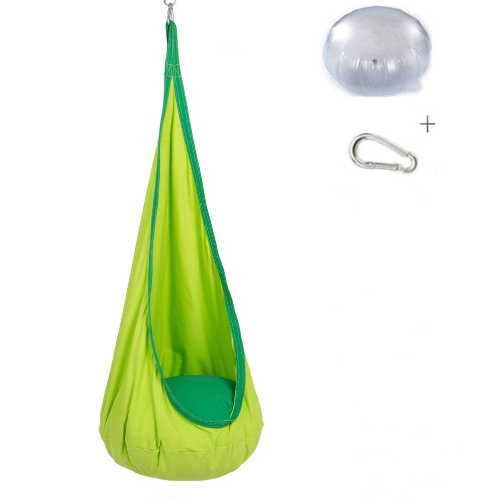 Závěsné houpací křeslo je vyrobeno ze 100% bavlny v provedení zelená. Součástí křesla je i nafukovací polštář z PVC. Nechte se hýčkat tímto dokonalým křeslem a užívejte si odpolední siestu na čerstvém vzduchu.