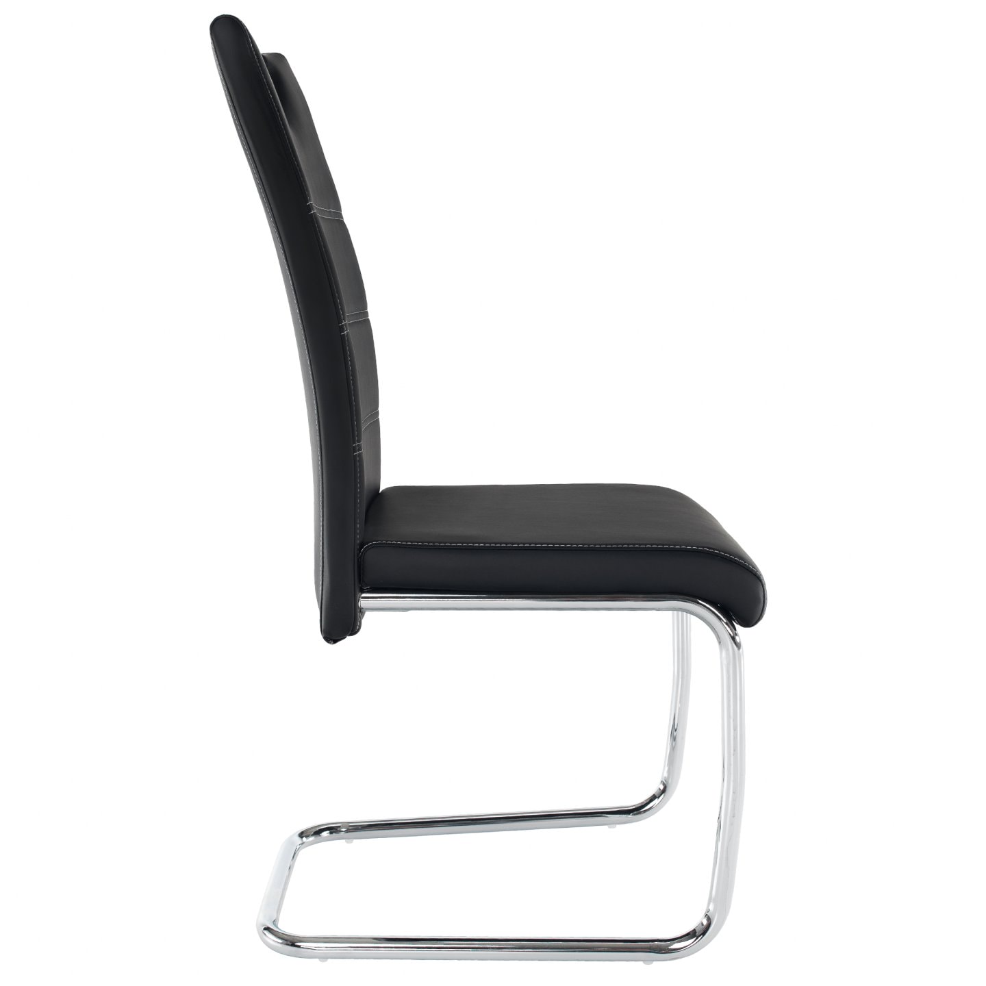 jídelní židle, materiál: ekokůže PU + chrom, Oděruodolnost textilie podle testu Martindale: 100 000 oděrek barevné provedení: černá. Rozměry ŠxHxV: 43x44x96 cm, výška sedu: 47 cm. Dodávané v demontu. Nosnost: 110 kg
