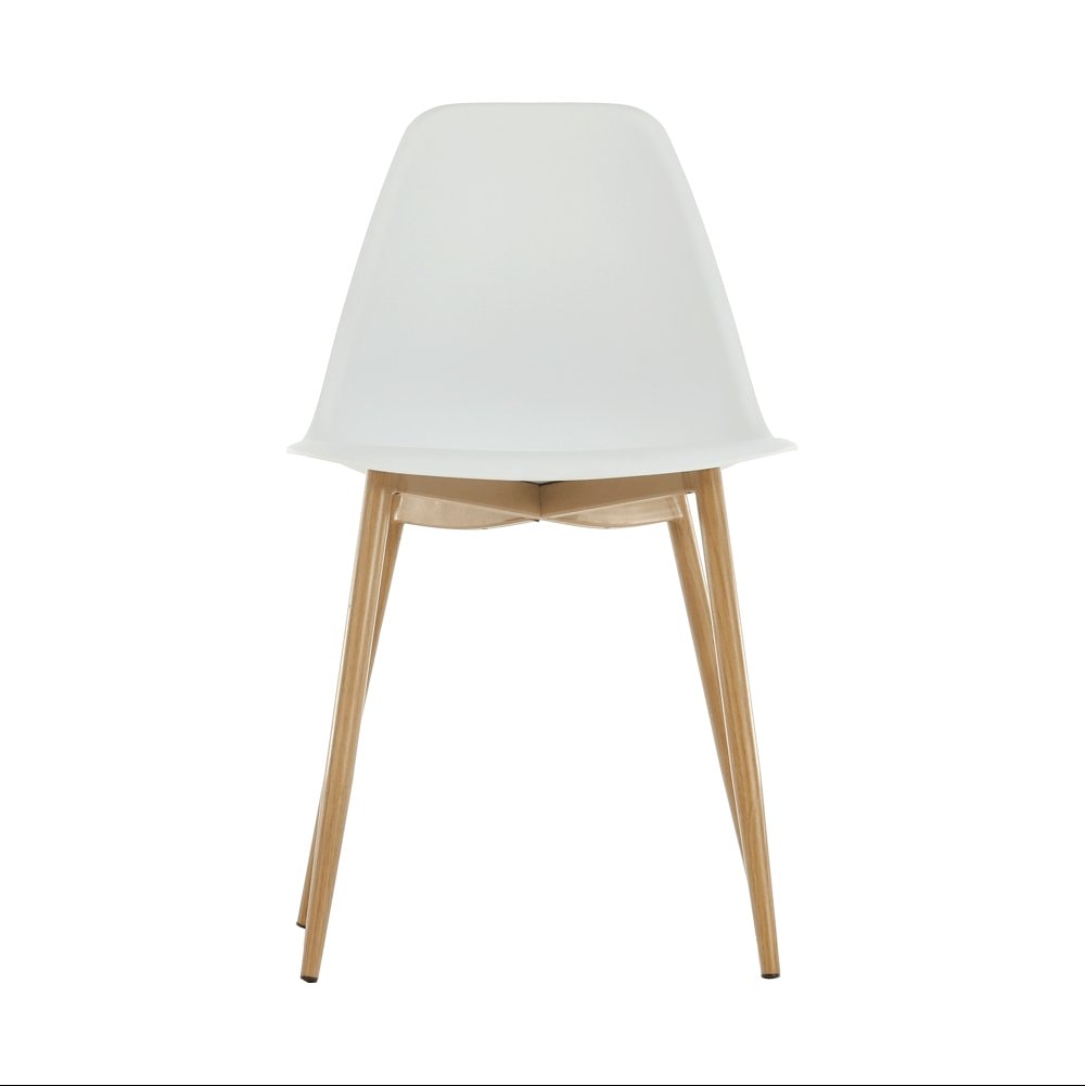 Jídelní židle Sint Materiál: plast / kov Provedení: bílá / přírodní Rozměry (ŠxHxV): 46x53x84,5 cm Výška sedu: 46 cm Hloubka sedu: 41 cm Nosnost: 120 kg