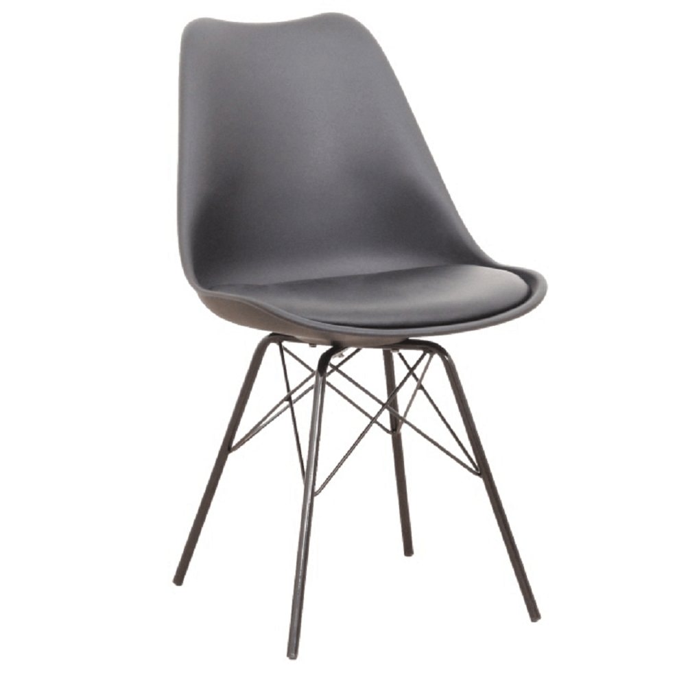 Designová židle s extra měkkým sedadlem TAMORA. Materiál: kov / plast / ekokůže Oděruodolnost textilie podle testu Martindale: 100 000 oděrek Barva: černá Rozměry (ŠxHxV): 48x57x83 cm Výška sezení: 49 cm Hloubka sedu: 43 cm Nosnost: 110 kg Dodávané v demontu.