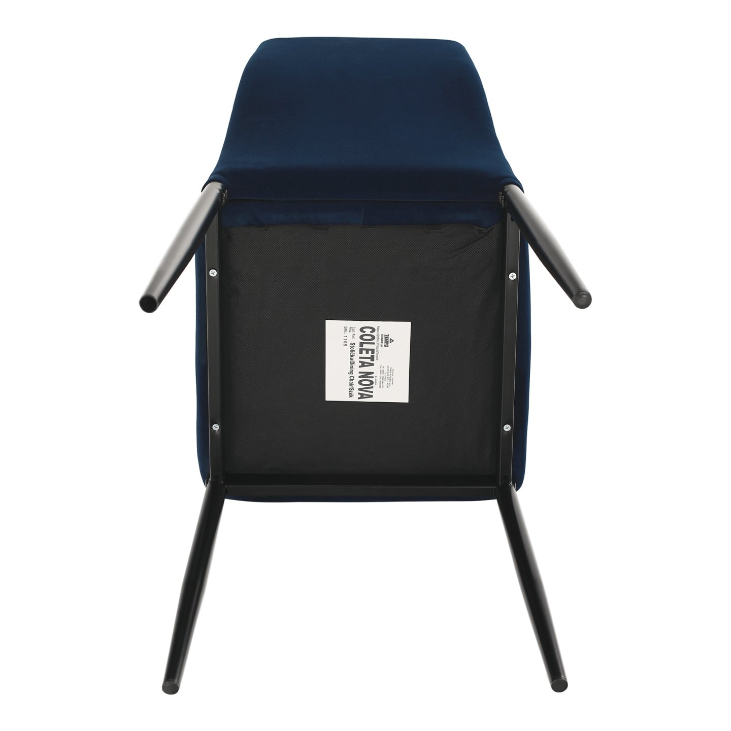 Jídelní židle COLETA NOVA v barevném provedení modrá velvet látka / černé kovové nohy. Oděruodolnost textilie podle testu Martindale: 85 000 oděrek Rozměry (ŠxHxV): 41x49x96 cm Hloubka sedu: 39 cm Výška sezení: 45 cm Šířka sezení: 41 cm Nosnost: 90 kg Dodávané v demontu.