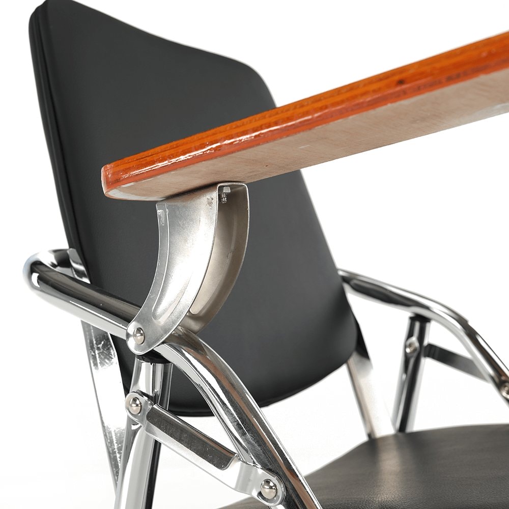 Zasedací židle SONER přichází s řešením. Je zajímavá nejen svým provedením, ale hlavně praktičností. Na židli je namontována deska, kterou využijete jako stůl při psaní poznámek, připomínek nebo úkolů, které budete přebírat. Šetří místo, díky čemuž se jich vejde mnohem více do místnosti.