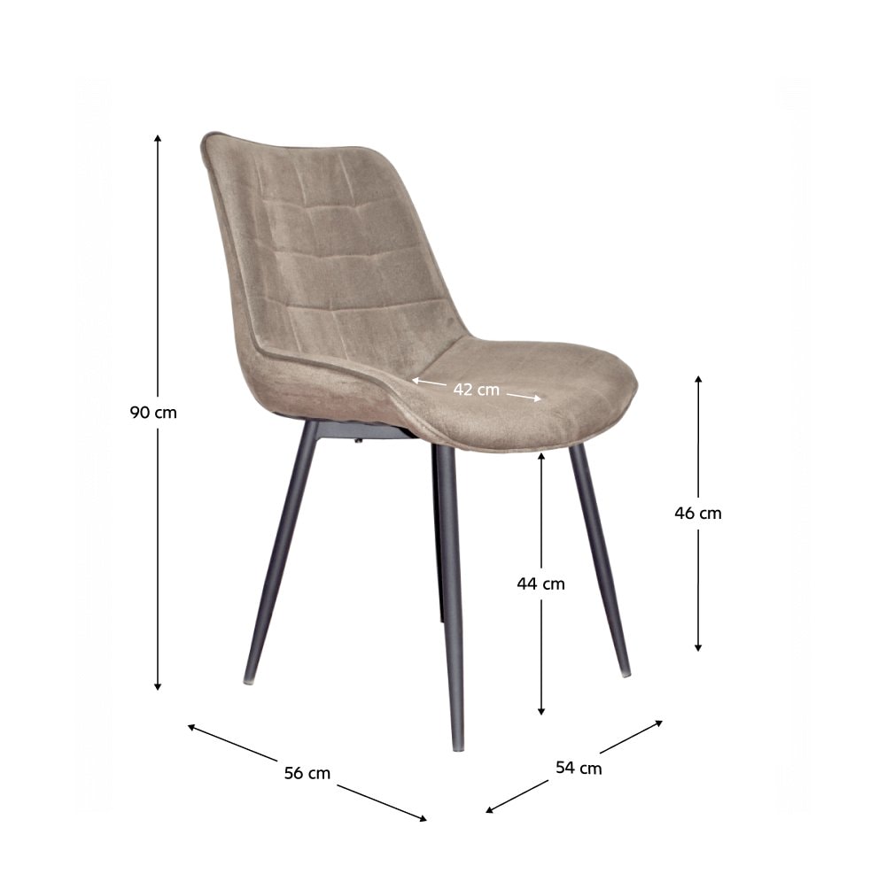 Materiál: látka Velvet / kov Oděruodolnost textilie podle testu Martindale: 80 000 oděrek Barva: šedohnědá taupe / černý nátěr Rozměry (ŠxHxV): 54x56x90cm Výška sedu: 46 cm Hloubka sedu: 42 cm Nosnost: 120 kg dekorativní šití sametová látka Dodávané v demontu