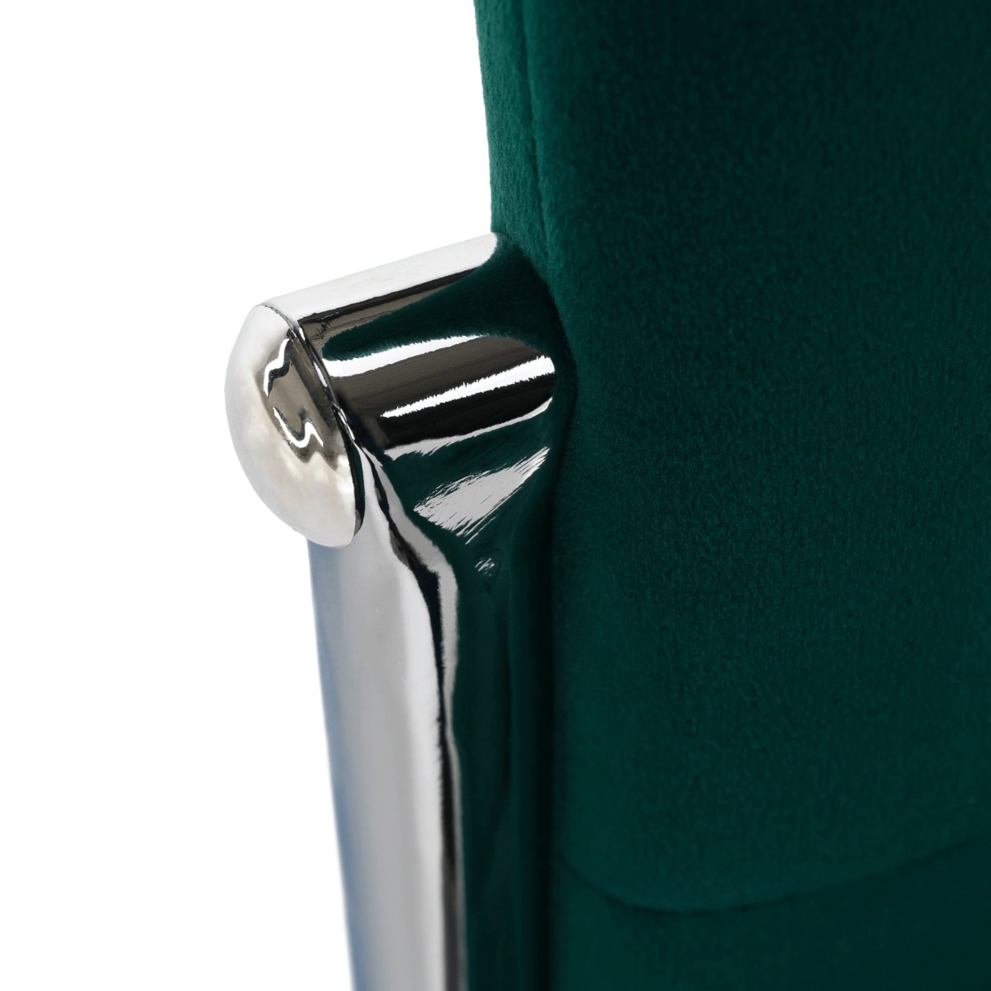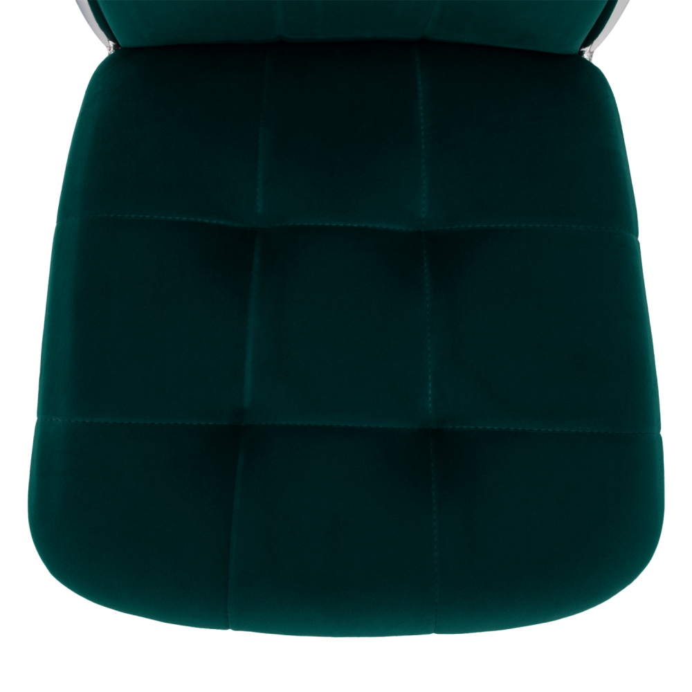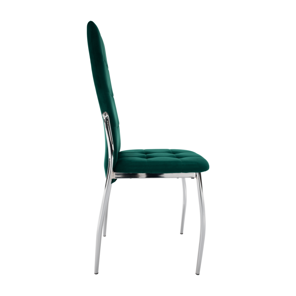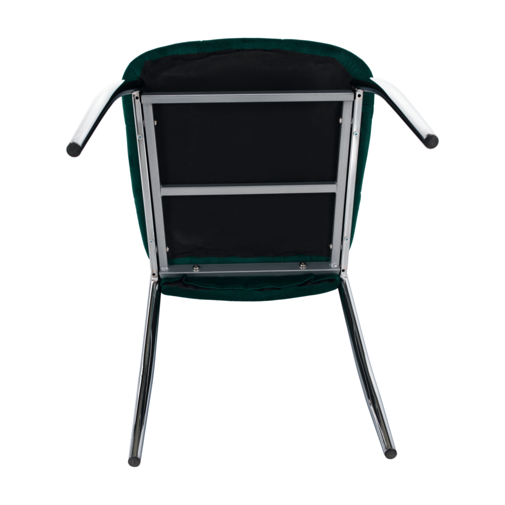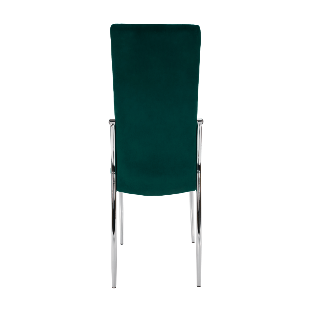 Pevná kovová konstrukce je doplněna měkkým sedadlem ve smaragdové látce. Stejně měkké je i opěradlo, které se pyšní dekorativním prošitím. Židli lze kombinovat s jakýmkoli jídelním stolem z naší nabídky.