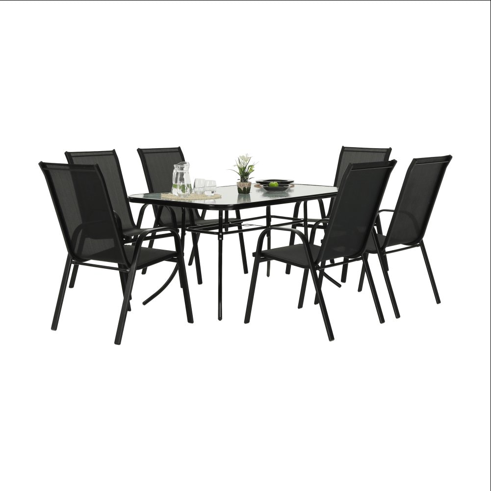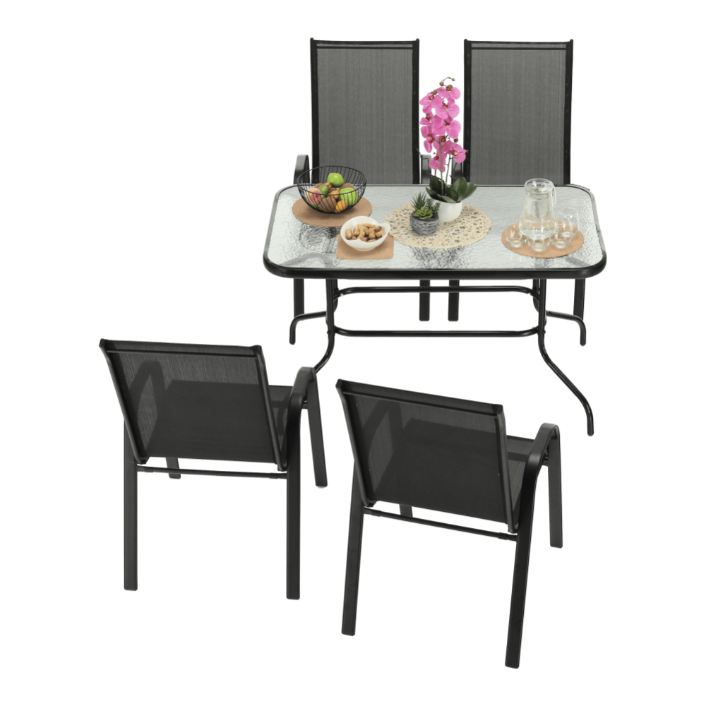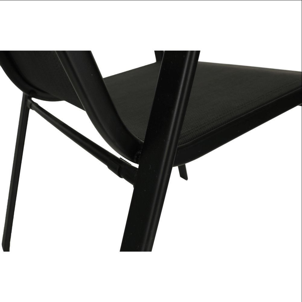 Sedací a opěradlová část je z tmavošedé látky, pevná a stabilní konstrukce je z černé oceli. Můžete ji snadno kombinovat se stoly z naší nabídky.