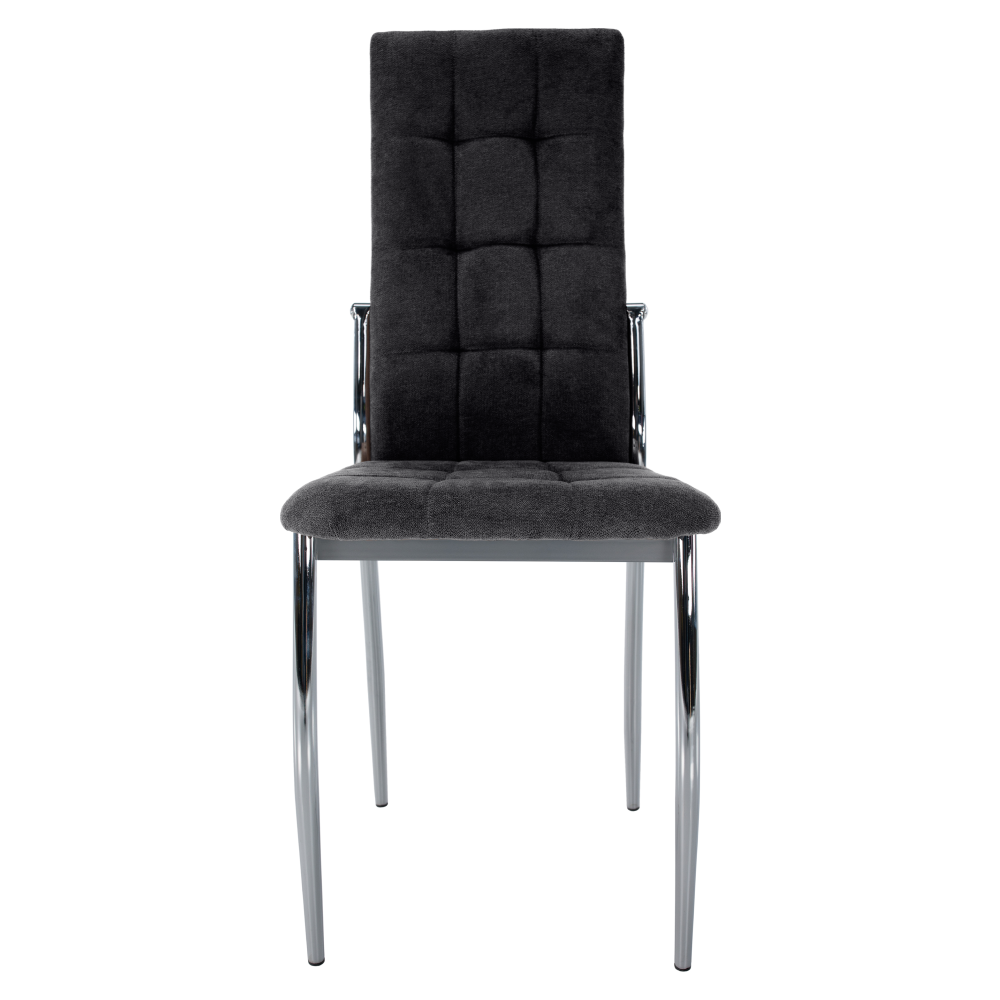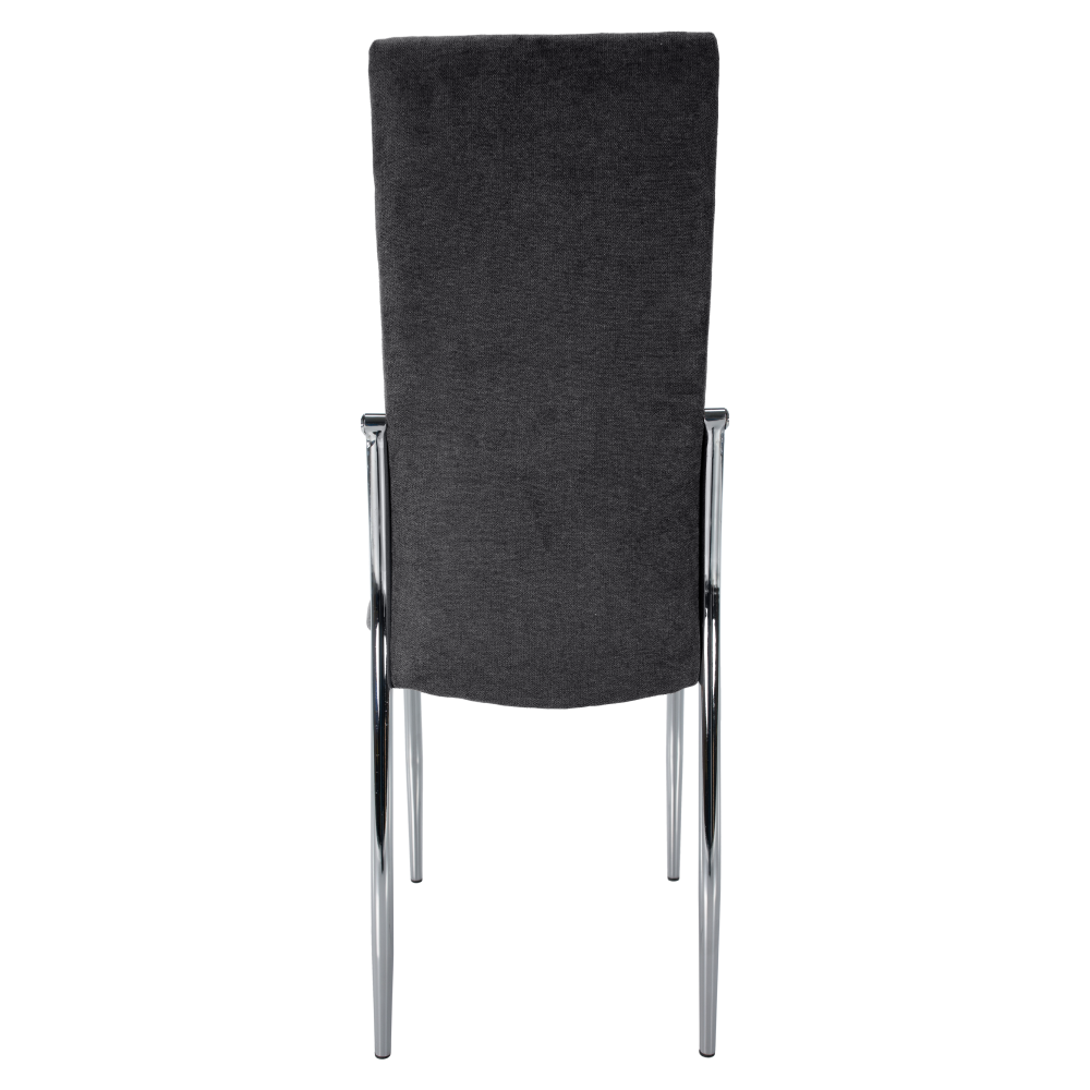 Materiál čalounění: látka Oděruodolnost textilie podle testu Martindale: 50 000 oděrů Barva: tmavě šedá Materiál nohy: kov Barva: chrom Rozměry (ŠxHxV): 46x56x99 cm Výška sedu : 47 cm Hloubka sedu: 42 cm Šířka sedu: 46 cm Výška zádové opěrky: 56 cm Šířka zádové opěrky: 36 cm Maximální nosnost: 100…