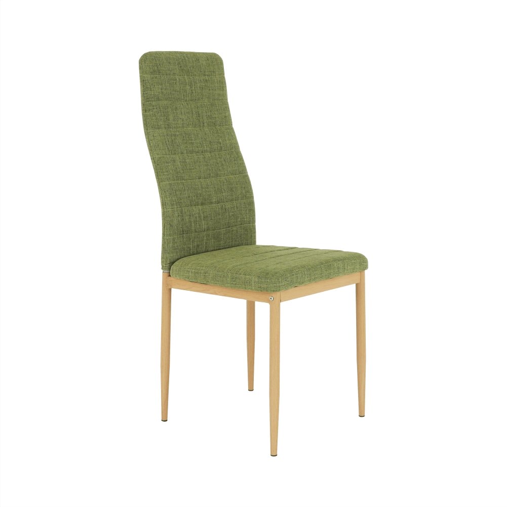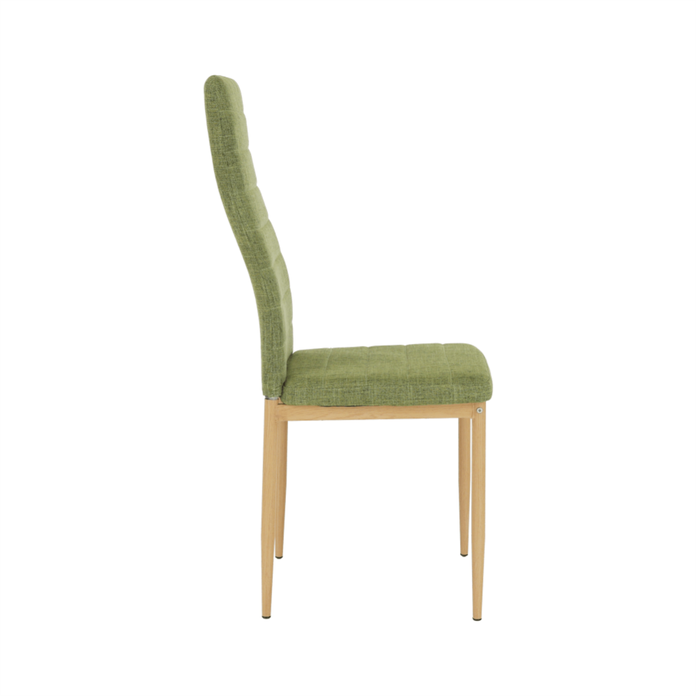 Moderní židle ze série COLETA NOVA v zelené látce rozzáří každou místnost. Stabilní kovový rám v povrchové úpravě buk zase dodává pocit jistoty. Tato kráska se pyšní vysokou opěrkou zad.