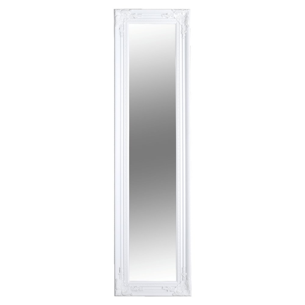 Elegantní zrcadlo s dřevěným rámem bílé barvy. Rozměry zrcadla 40x150 cm.