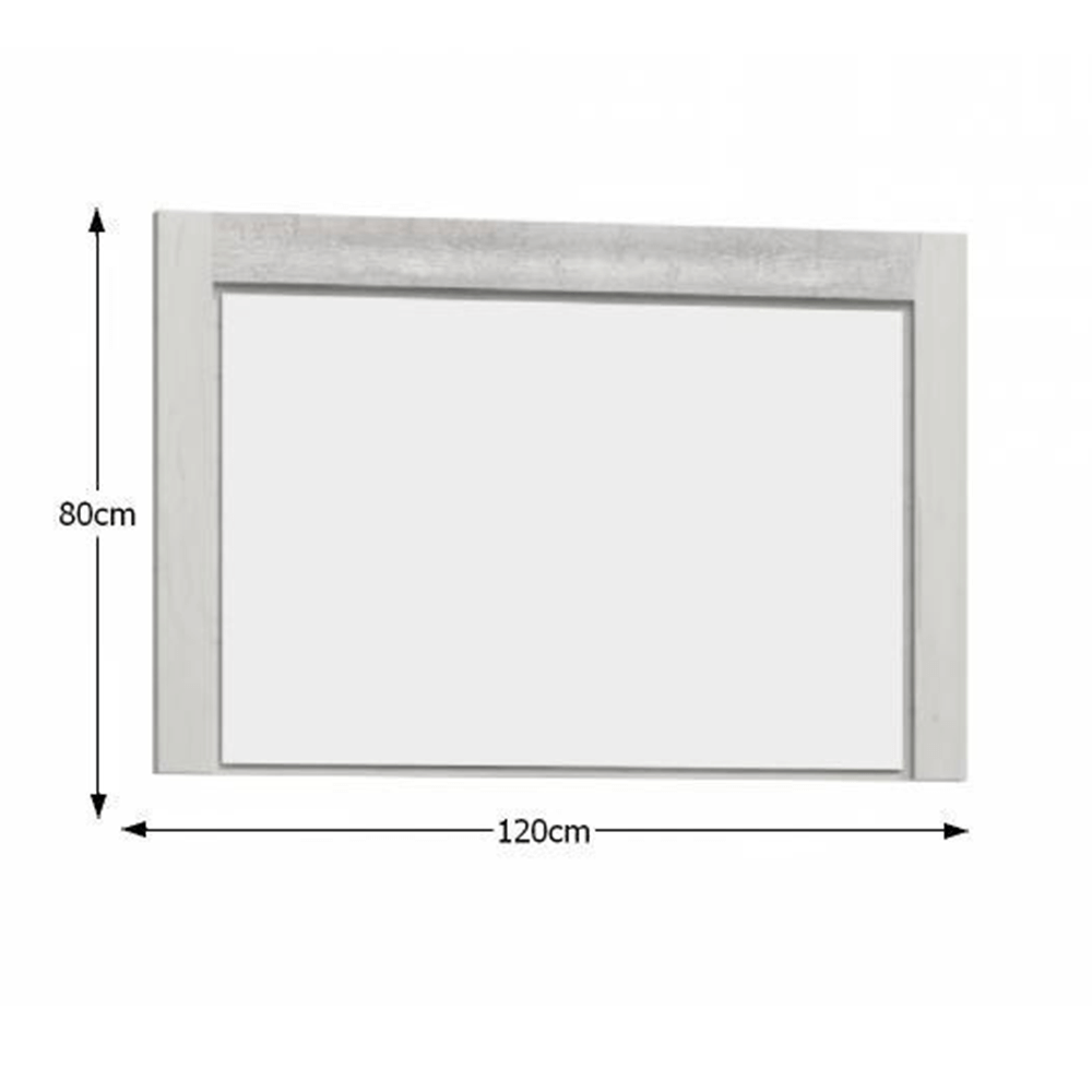 Zrcadlo 12 z luxusního sektorového nábytku. Materiál DTD laminovaná, ABS hrany, barevné provedení: jasan bílý Rozměry ŠxV: 120x80 cm. Tloušťka materiálu: 16 mm Dodávané v demontu.