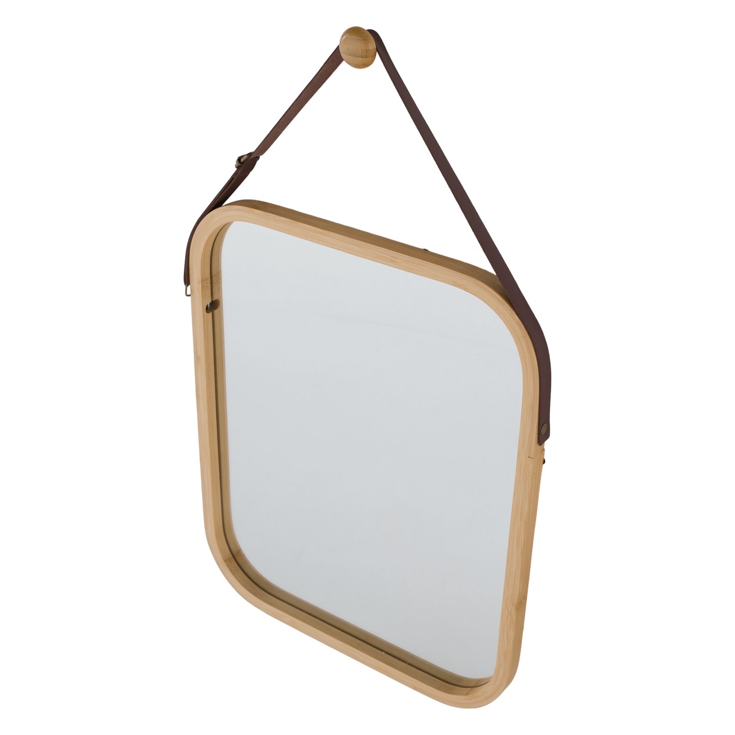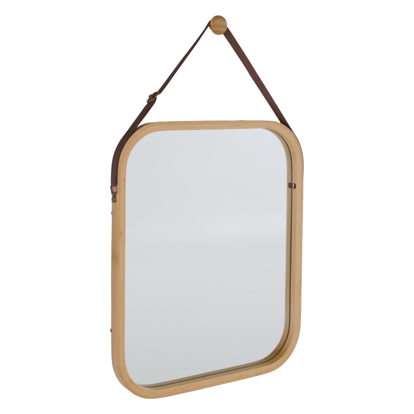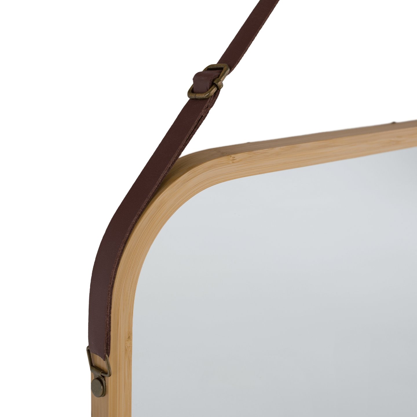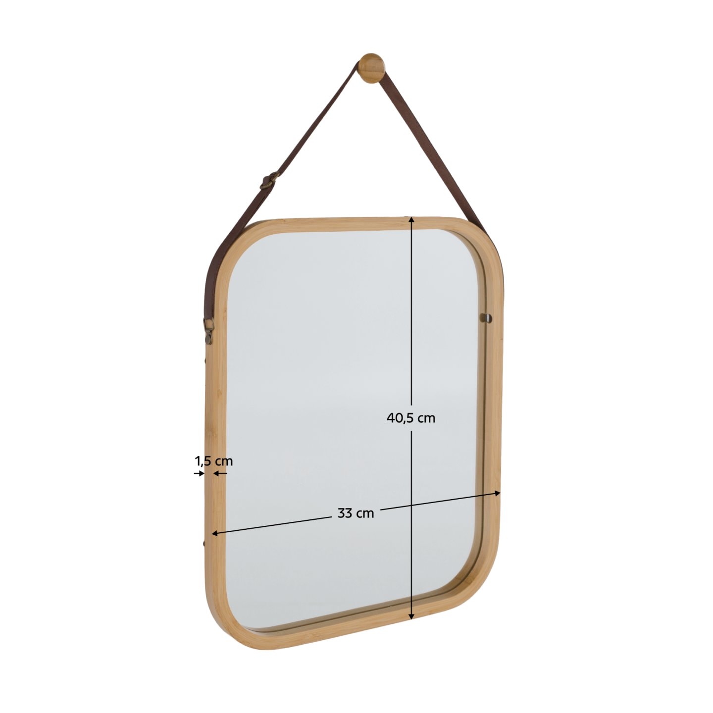 Jednoduché zrcadlo s bambusovým rámem LEMI 2 Materiál: lakovaný bambus/sklo Barva: přírodní Rozměry zrcadla (ŠxHxV): 33x1,5x40,5 cm Tloušťka skla: 3 mm Dodávaná s dřevěným háčkem. Zavěšení zrcadla: úchytka z hnědé ekokůže Dodávané v monte.
