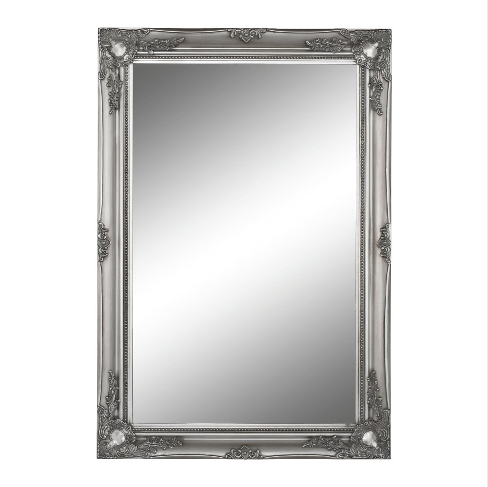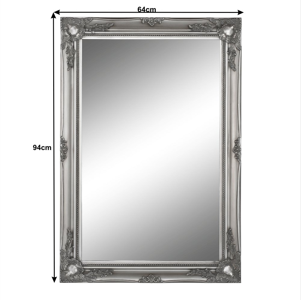 Zrcadlo MALKIA TYP 7 s dřevěným rámem stříbrné barvy. Rozměry (ŠxV): 64x94 cm